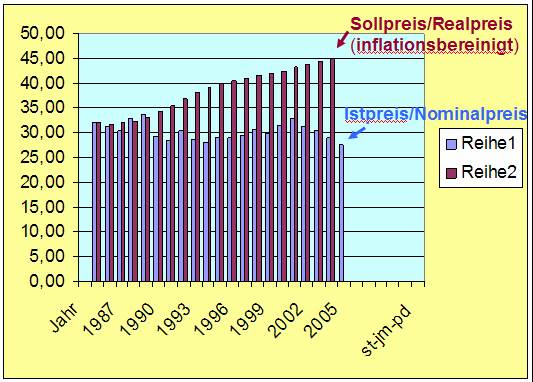 Milchpreis von 1985-2005 |